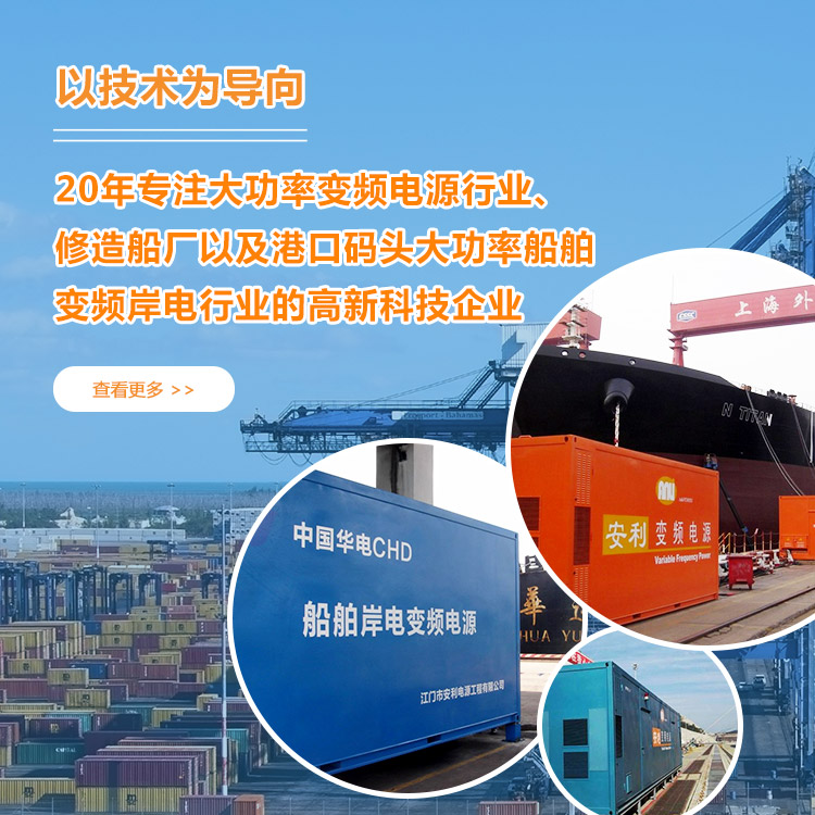 我司是專業從事大功率變頻電源設備的研發設計、生產制造、銷售、安裝調試一條龍服務的電源設備工程公司。是一間以技術為導向,專注大功率變頻電源行業、修造船廠以及港口碼頭大功率船舶變頻岸電行業的國家級高新技術企業。公司本著“專業、專心、專注、專一”的精神,提供技術先進、性能可靠的大功率變頻電源設備系列產品及提供完整的大功率變頻電源解決方案及工程安裝服務。